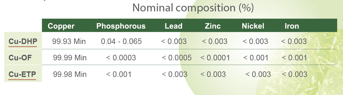 Oxygen Free Copper Anode (Cu-OF) and Electrolytic Tough Pitch (Cu-ETP)