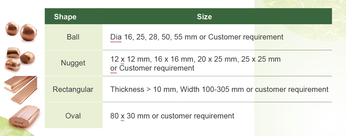 - Electrolytic Tough Pitch Copper Anodes (Cu-ETP)
